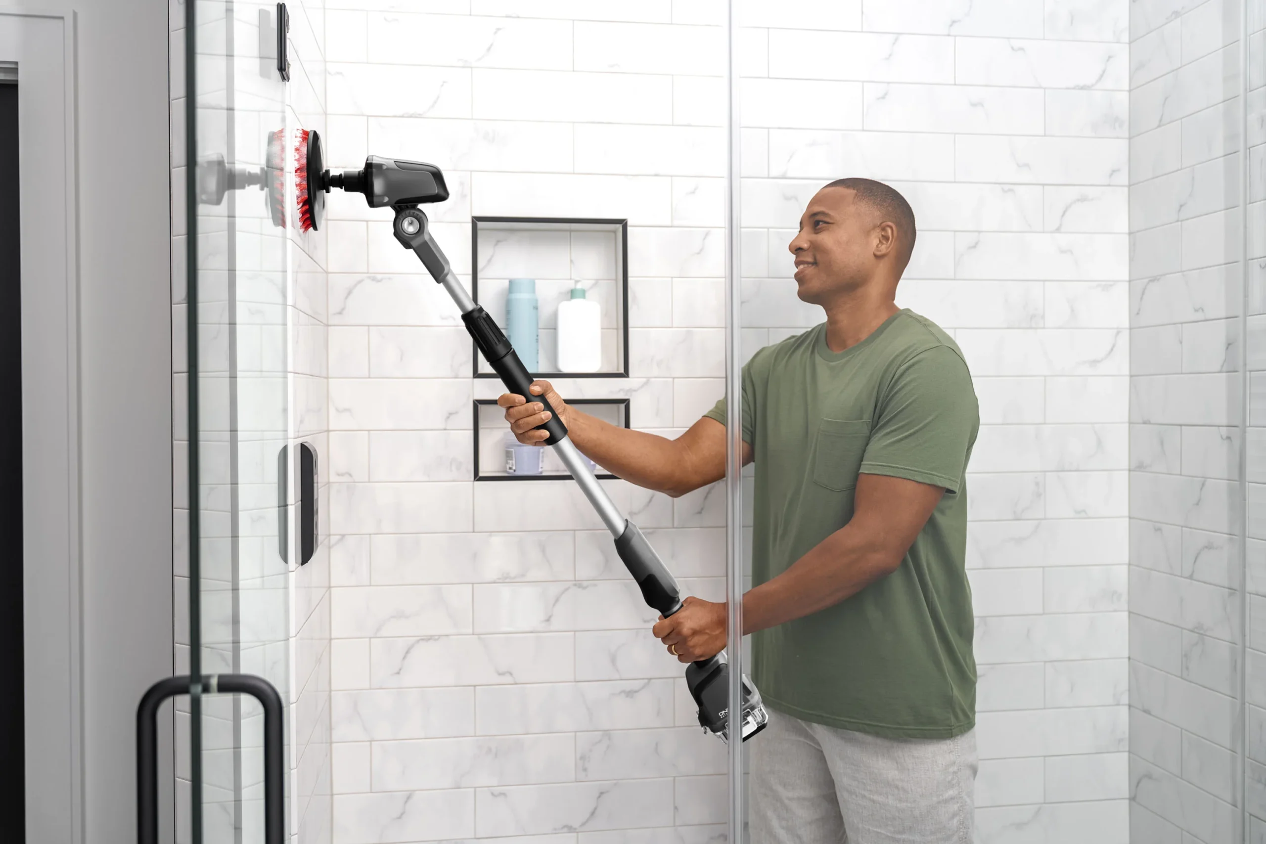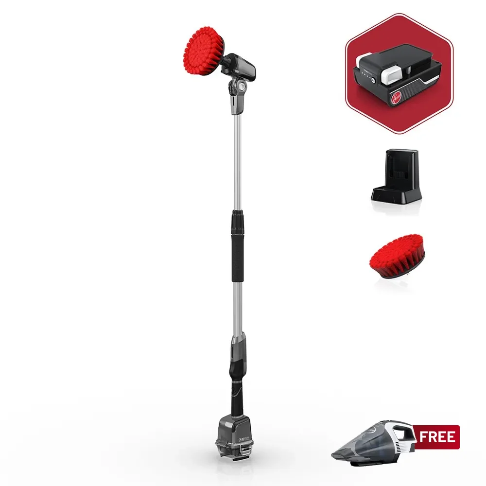 The Hoover ONEPWR Telescoping Cordless Scrubber ensures that no mess is out of reach. With over four feet of extended scrubbing reach and easy, powered scrubbing, tackling messes inside and outside the home is a breeze. The ONEPWR battery is protected in a water-resistant housing, which makes cleaning decks, siding, bathrooms, boats and more effortless. And with a pivoting brush head and interchangeable brushes, it is easy to power through any mess, no matter the angle.