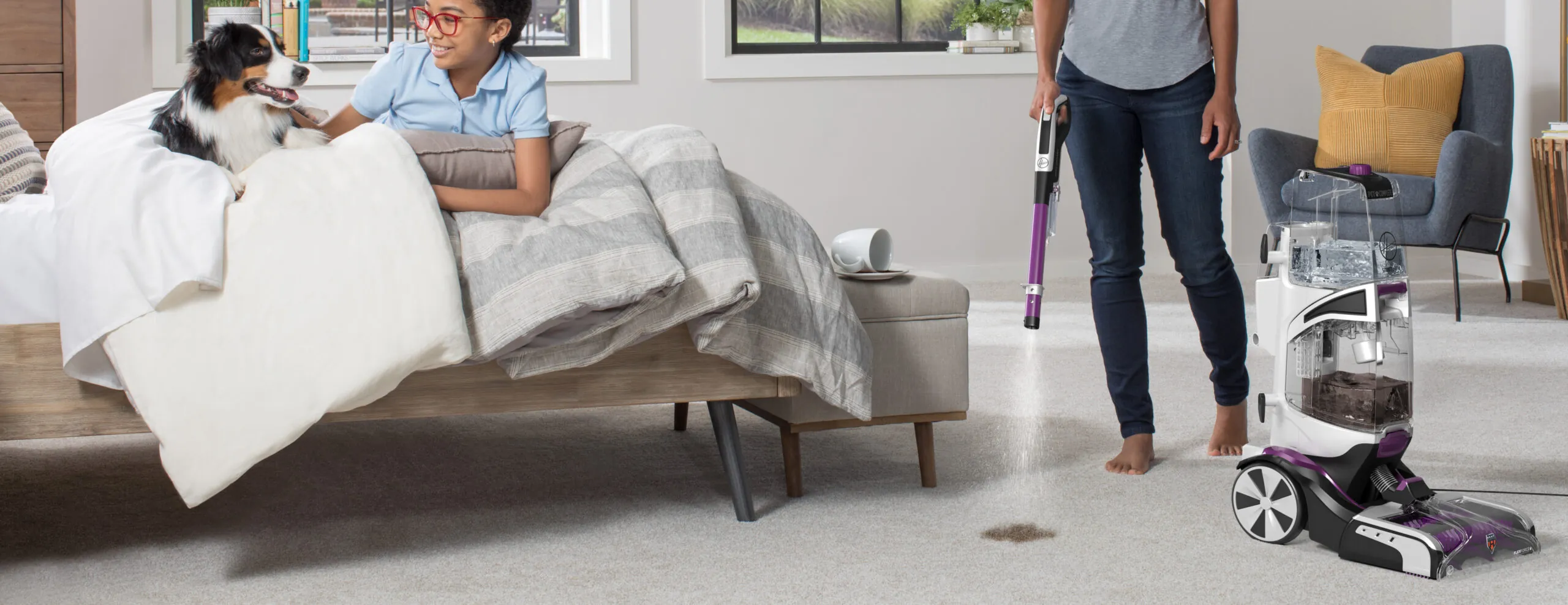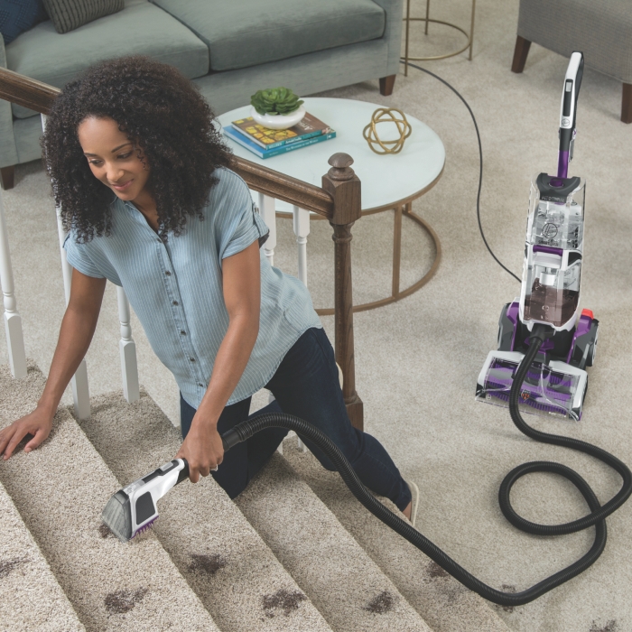 The Hoover SmartWash™ PET Complete Automatic Carpet Washer is just as easy to use as our original SmartWash. Simply push forward to clean and pull back to dry. No trigger, and no mixing solutions. It’s literally as easy as vacuuming. And the SmartWash™ PET Complete is designed specifically for homes with pets. Use the Spot Chaser™ Pretreat Wand to pretreat stains before you clean or as you go. Plus, the antimicrobial FlexForce Pet PowerBrushes remove deep-down dirt while resisting pet odours. For those pet stains on stairs or furniture.
